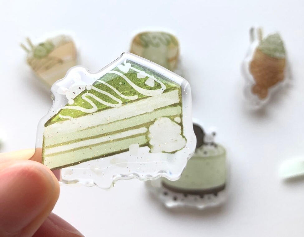 ★ Double-sided clear acrylic charm with metal clasp. The front side has glitter epoxy, and is smooth with rounded edges.